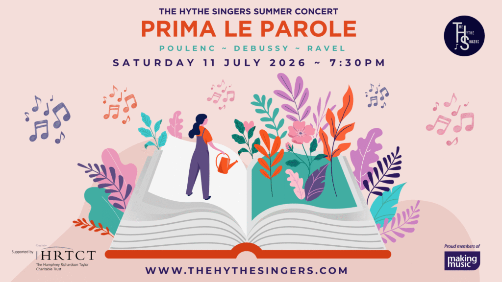 Bring a bottle and a picnic to the Hythe Singers’ informal Summer Concert, with music on the theme of “Dawn to Dusk”.